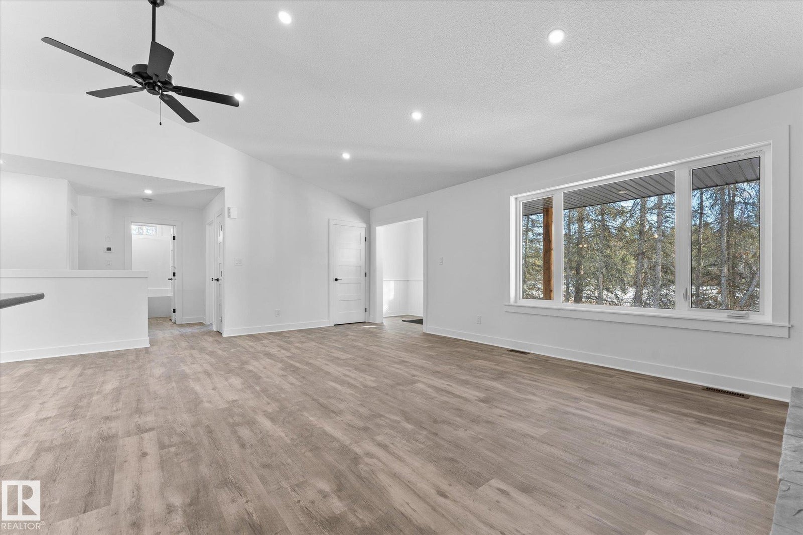 IMMEDIATE POSSESSION! 2.62 ACRES enveloped by a majestic treed paradise! Quality custom built walkout bungalow, just under 1600 sq ft, nestled in nature. Modern country charm, featuring a grand floor to ceiling wood burning stone fireplace. Beautiful vaulted ceilings, an open concept living, kitchen and dining that flow functionally and beautifully. Three bedrooms up, featuring a 5 pc spa-like ensuite, and a full 4 pc main bath. Unspoiled walkout basement is framed in for a 4th bedroom, laundry and a large future family room! The backyard oasis in donned by the massive 12 x 22 deck on a concrete pad overlooking your trees of many varieties! The builder provides Progressive New Home Warranty. GST is included in the purchase price. Enjoy the breathtaking landscape, it’s not as far out as you think! *some photos are taken from a mirrored floorplan to highlight virtual options for placement of furniture*