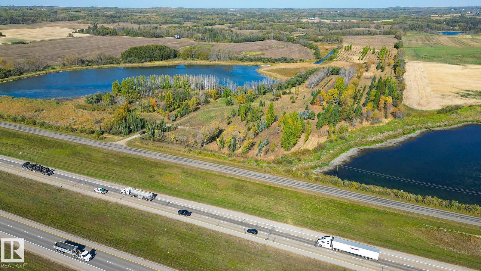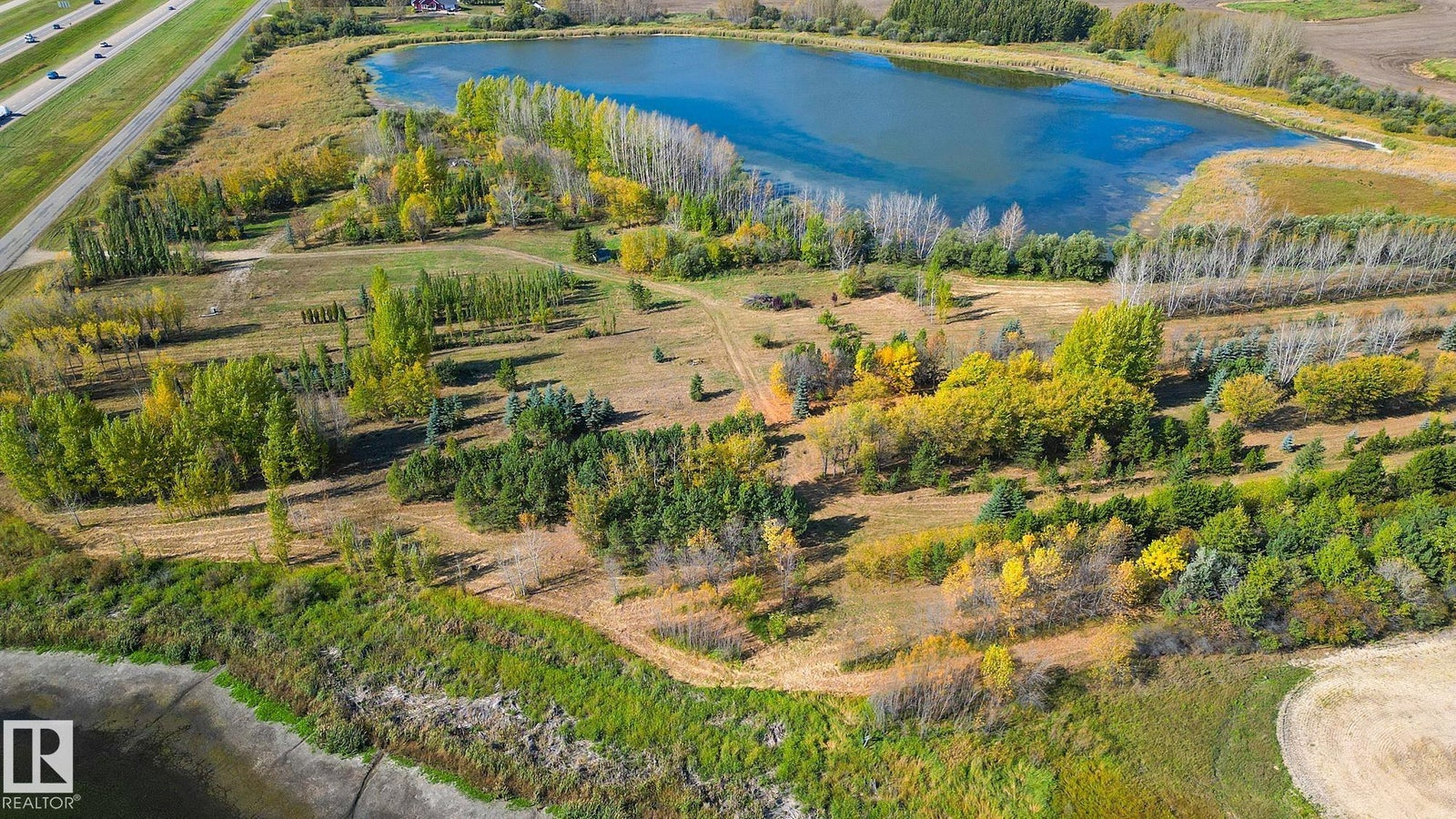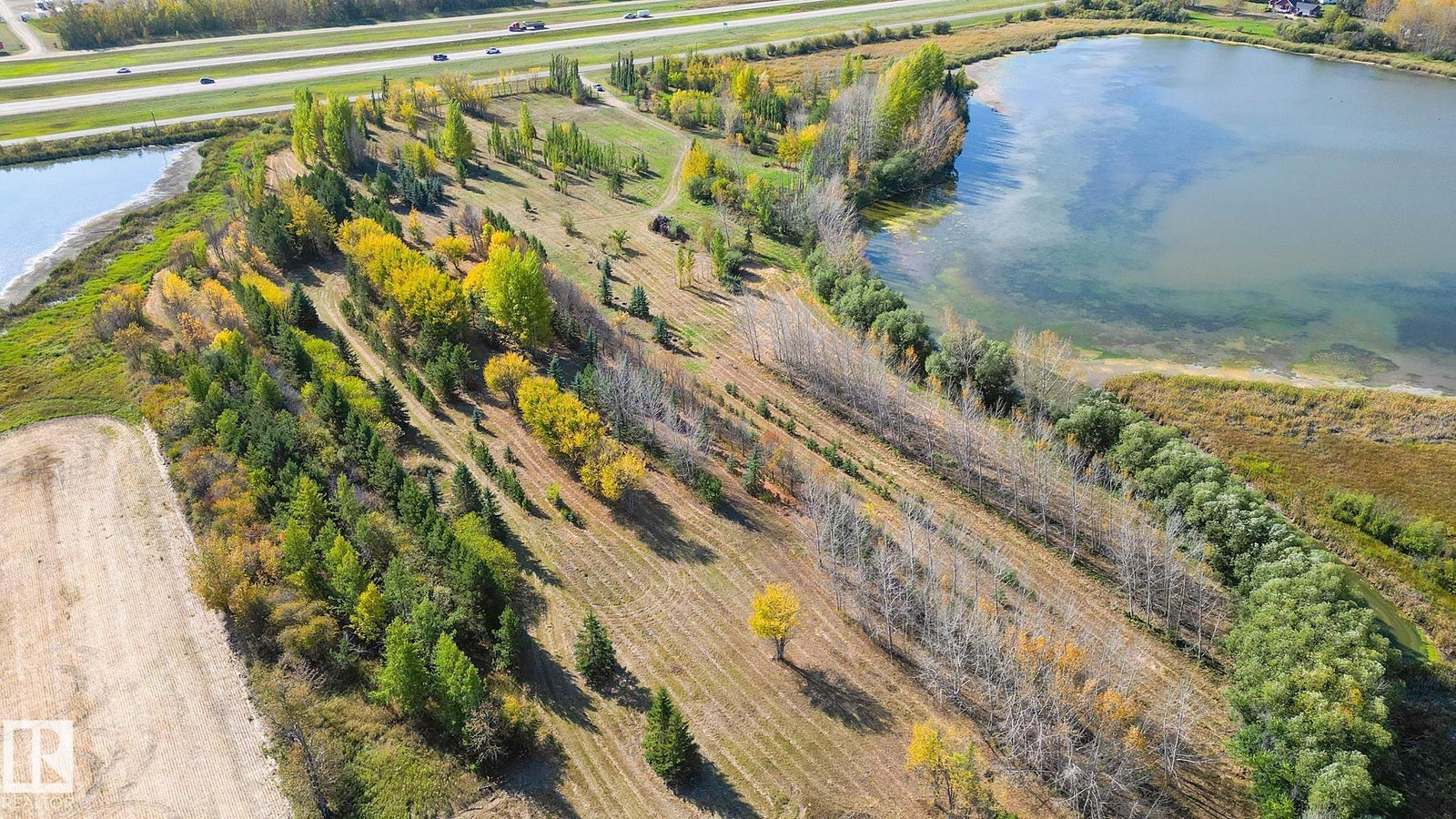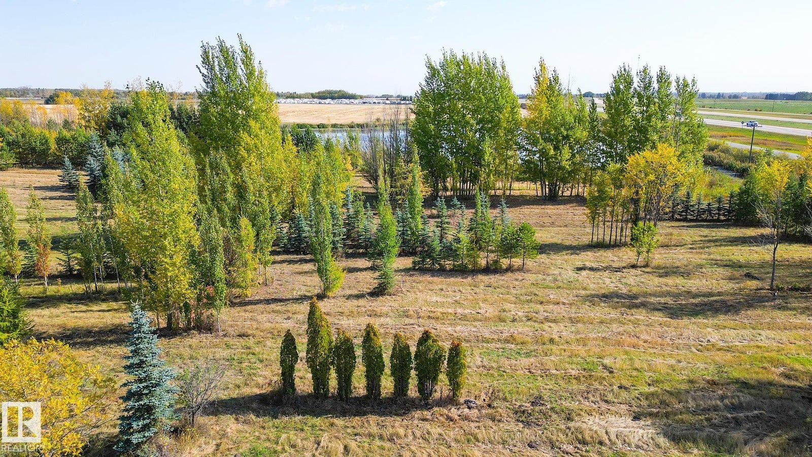 25 Acres OUT OF SUBDIVISION* Dreaming of running your own business? Wedding Venue? Greenhouse/nursery/farmers market? Storage yard/ shop? By any definition, this magnificent parcel of creation offers prime highway exposure with convenient service road access. Fully fenced, cross-fenced, and gated. Bordered by lakes on both sides, it features over 10,000 trees at all stages of growth, creating a natural, park-like setting. With power, natural gas, and a high-capacity well already in place, the property, formerly a nursery, is ready for a new vision. Its combination of utilities, access, and natural beauty makes it ideal for those looking to reimagine and develop in a modern, creative way.