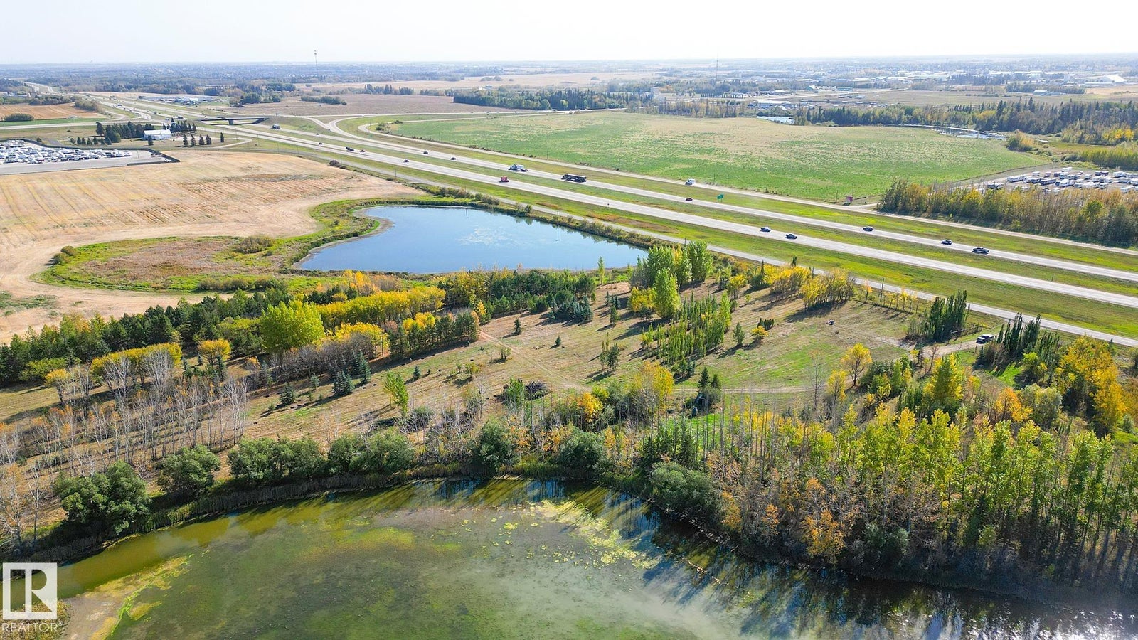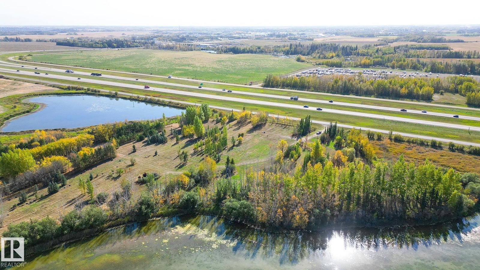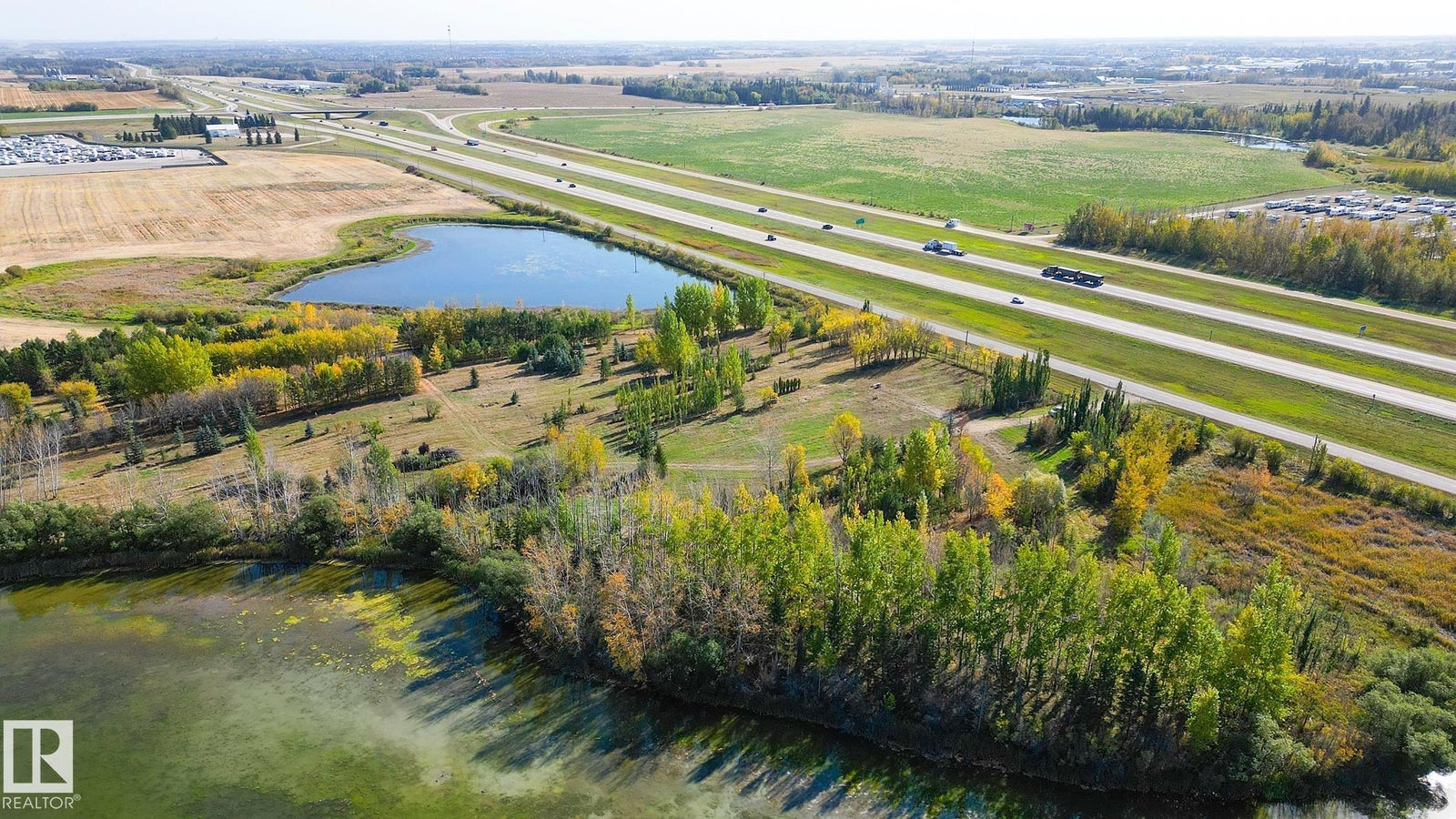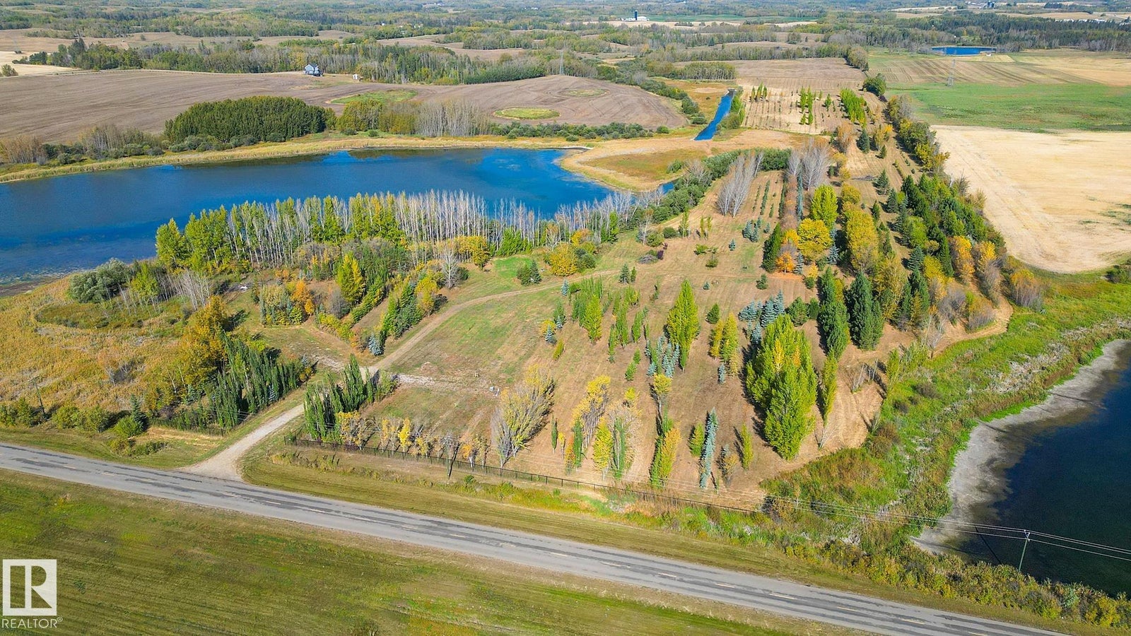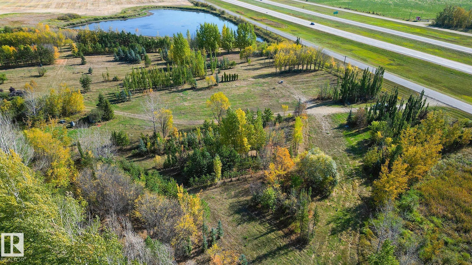 25 Acres OUT OF SUBDIVISION* Dreaming of running your own business? Wedding Venue? Greenhouse/nursery/farmers market? Storage yard/ shop? By any definition, this magnificent parcel of creation offers prime highway exposure with convenient service road access. Fully fenced, cross-fenced, and gated. Bordered by lakes on both sides, it features over 10,000 trees at all stages of growth, creating a natural, park-like setting. With power, natural gas, and a high-capacity well already in place, the property, formerly a nursery, is ready for a new vision. Its combination of utilities, access, and natural beauty makes it ideal for those looking to reimagine and develop in a modern, creative way.