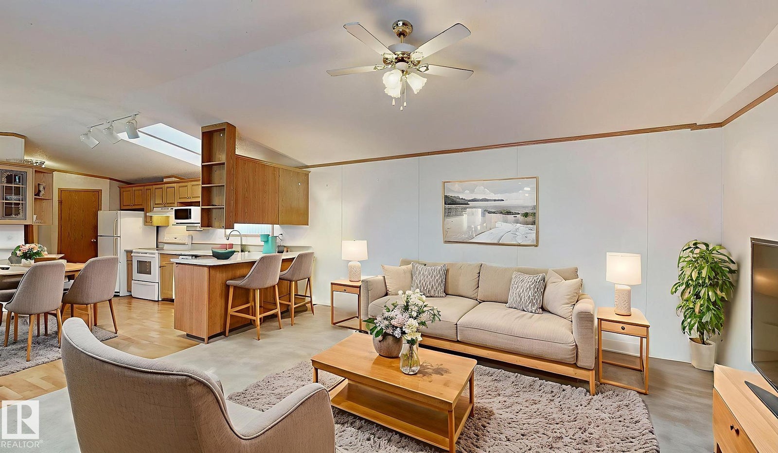 Welcome home! Perfect for the first-time buyer, young family, or empty nester! Three bedrooms, a full four-piece main bathroom, and a 3-piece spa-like ensuite. Bright and airy open concept living, dining and kitchen areas. Enjoy the fully fenced, private backyard with no neighbours behind. Large 10 x 12 2006 shed holds all the tools and toys you may need! The electric outdoor chair lift is included in the sale. Amenities include shopping, dining, a gas station, walking trails, playgrounds, and a community center, just minutes to Edmonton, St Albert and Spruce Grove. Activities, events, youth groups, parents and tots, coffee and crafts... what a fantastic social community. This place feels like home. Make it yours! *Some photos are virtually staged to highlight furniture placement ideas*